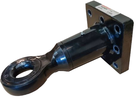 Pieza mecanizada de acero al carbono con rótula radial insertada de 50mm de diámetro de agujero y rosca M45x1,5. Se usa para el empuje en los cilindros hidráulicos.