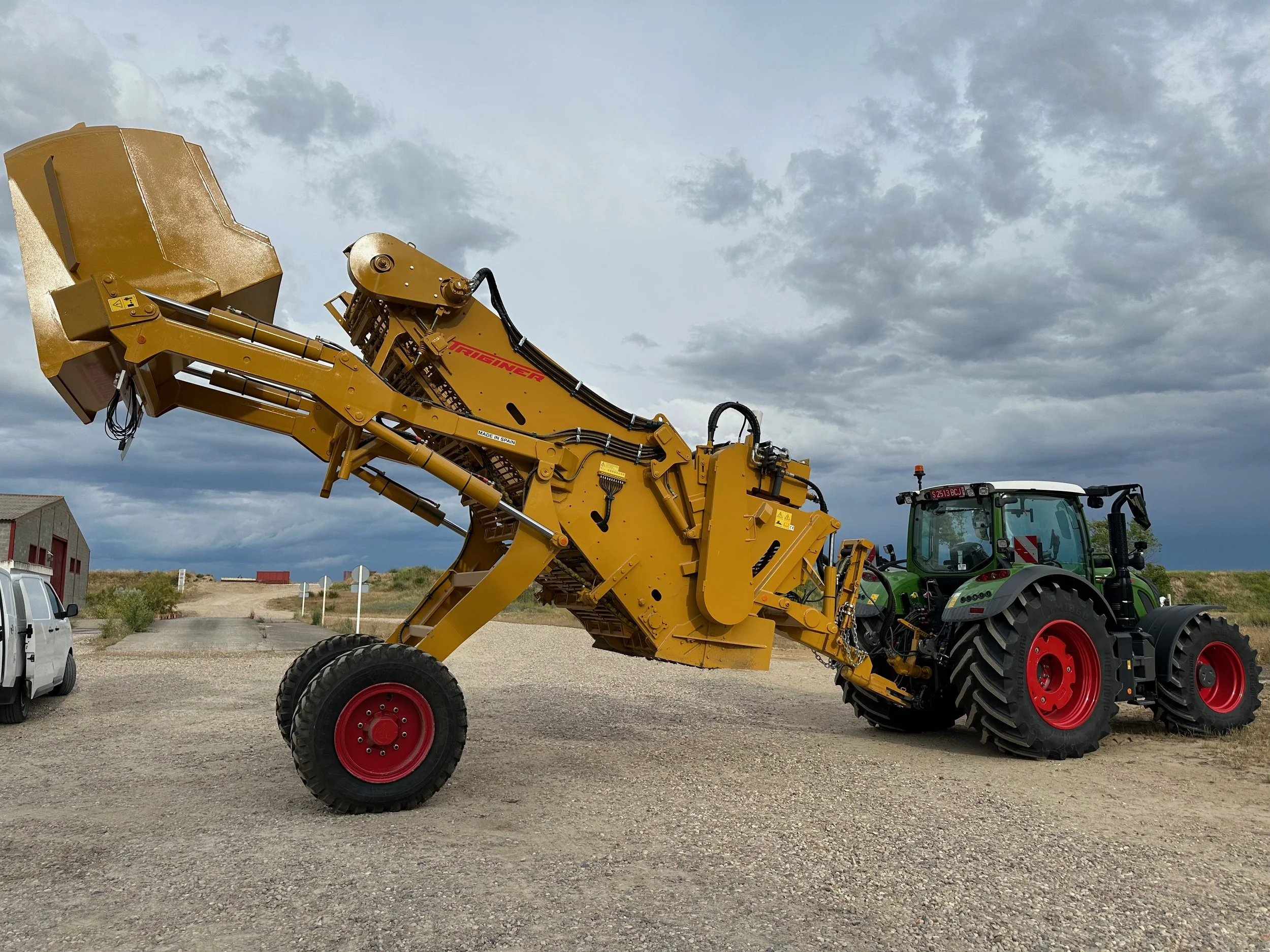 Despedregadora diseñada para tractores desde 160 a 250 HP. Sus dimensiones y su peso reducido la hacen ideal para trabajar de manera ágil y rápida. 1,9m de ancho de trabajo y 3m³ de capacidad de tolva.